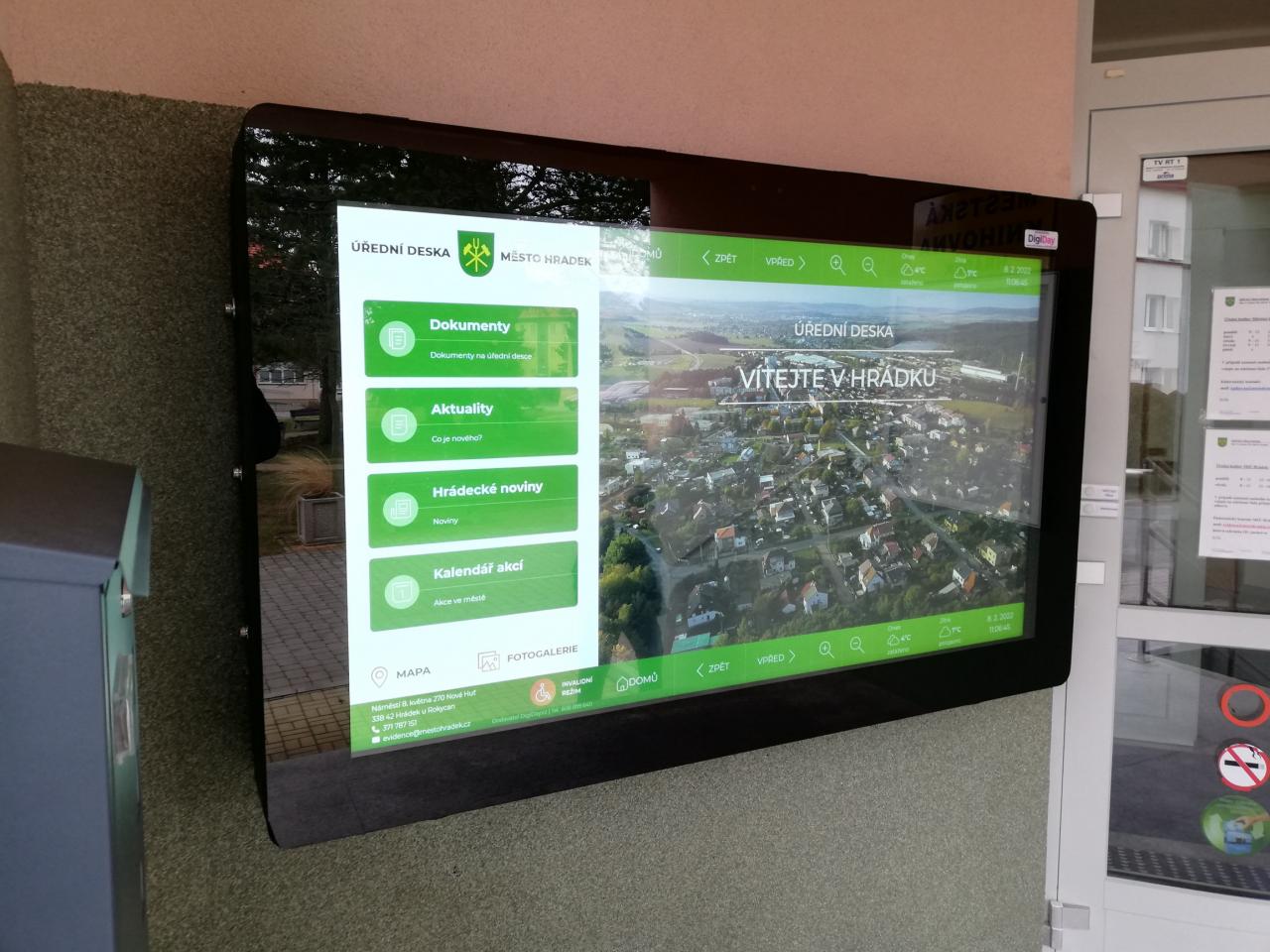 Elektronická úřední deska umožňuje komunikaci s občany moderní formou, dochází k ušetření nákladů za tisk, výhodou je automatické propojení s kiosku s webovými stránkami města. Na elektronické desce jsou informace přístupné 7 dní v týdnu, 24 hodin denně, 365 dní v roce a je umístěna na budově MěÚ u vchodu.