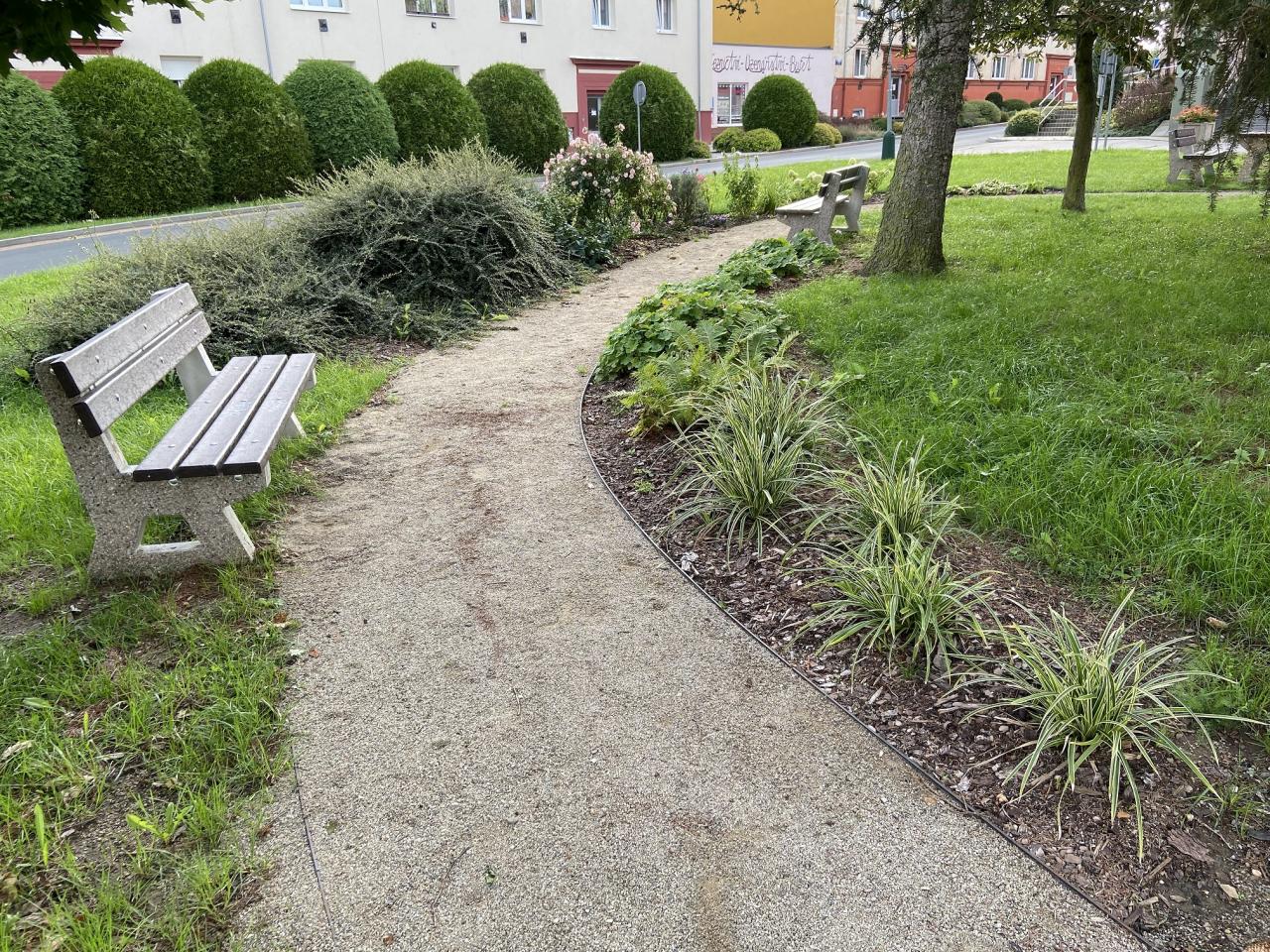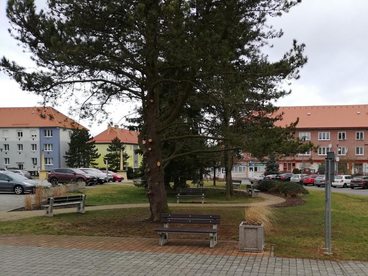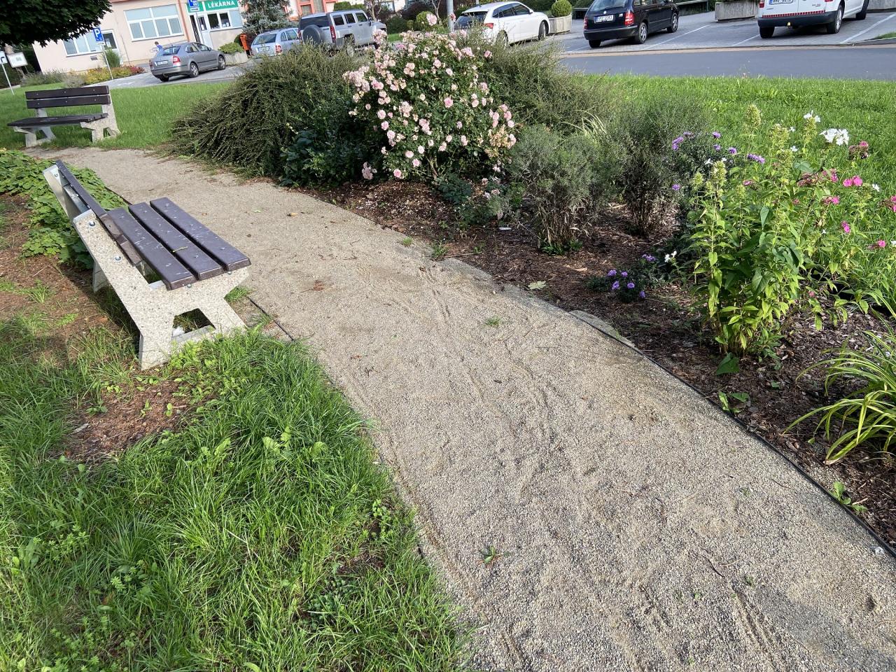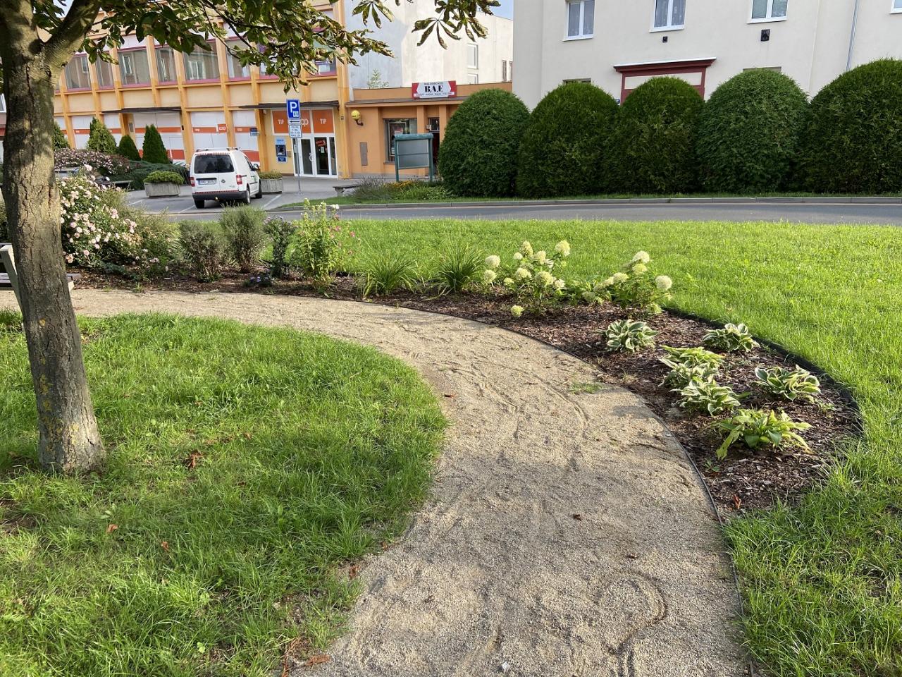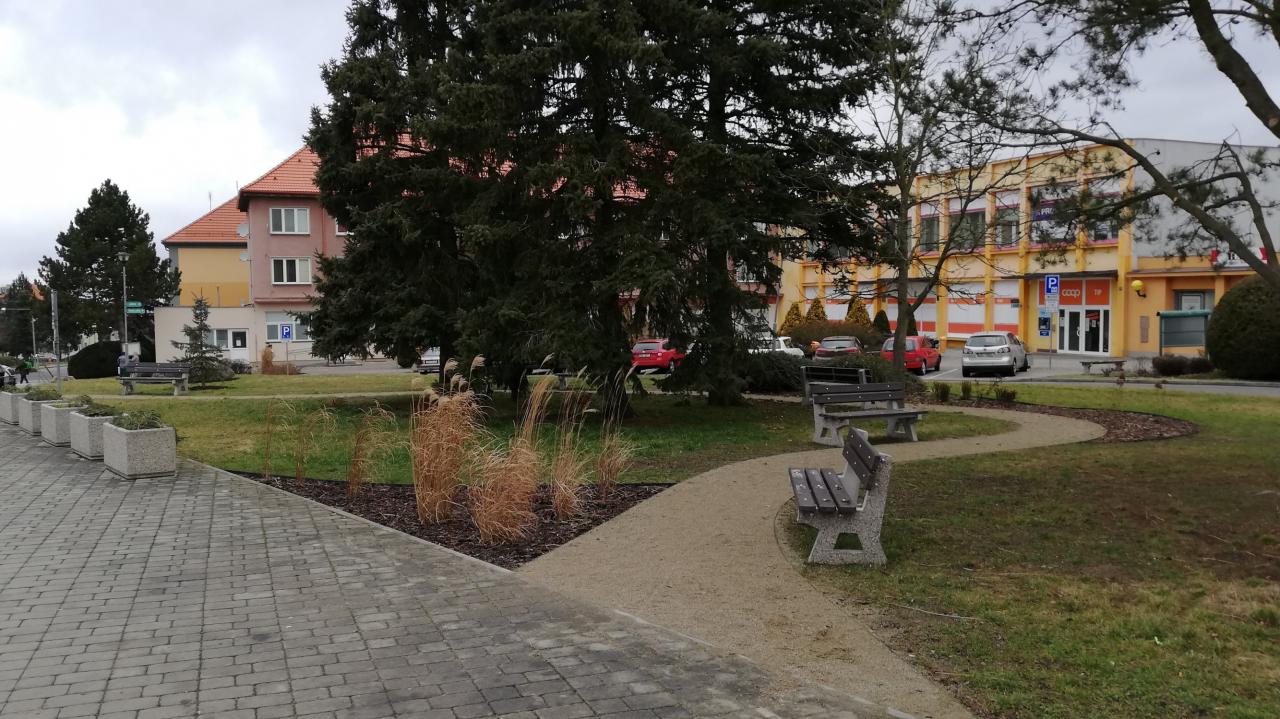 Cílem projektu bylo vytvoření klidové a odpočinkové zóny kolem náměstí a úřadu, vytvoření zpevněných pěšin, jednak z estetického důvodu, ale také z bezpečnostního. Dále z důvodu propojení přestupu od autobusové zastávky ke škole. Spolu s umístěním laviček kolem pěšin vznikla odpočinková zóna v nově vytvořeném parčíku a došlo ke zlepšení vzhledu okolí městského úřadu.